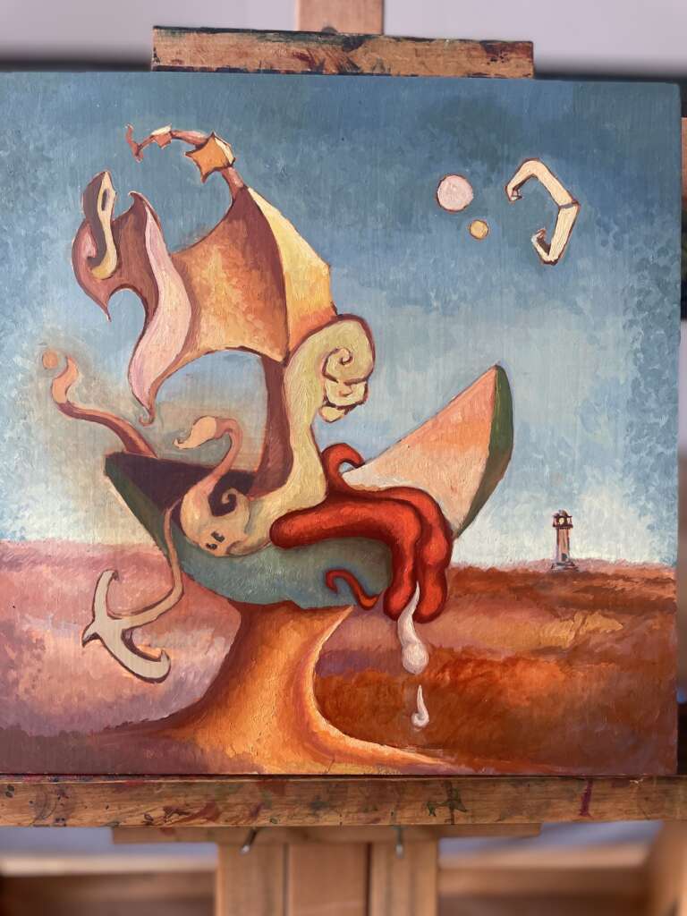 En mis últimas obras están cobrando cada vez más protagonismo los paisajes desérticos. Para mi simbolizan esos momentos de la vida en los que todo parece detenido, donde lo conocido ya no basta y la mirada, casi inevitablemente, se dirige hacia dentro. Como un barco a la deriva en el silencio, nos suspendemos entre lo que fuimos y lo que podemos llegar a ser. En esa quietud surge la posibilidad de reconstruir nuestro sentido: podemos dar un nuevo significado a nuestra experiencia, aunque esto implique esfuerzo y dejar de lado aquello que ya no nos es útil.
